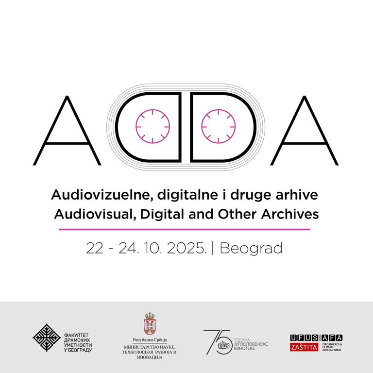 Pozivamo vas da prisustvujete interdisciplinarnom naučnom skupu ADDA - Audiovizuelne, digitalne i druge arhive, koji će se održati u periodu od 22.10. do 24.10.2025. godine u Beogradu, u hibridnoj formi (onlajn i uživo).