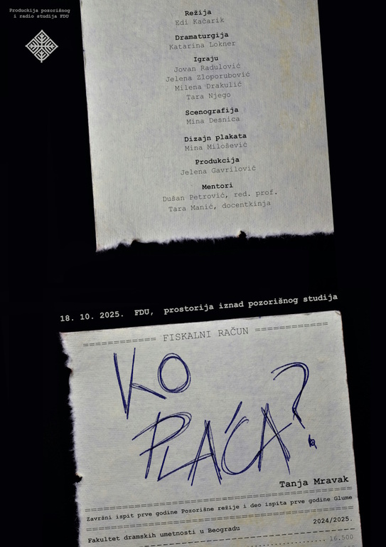Produkcija: Ksenija Đurić i Teodora Gnjidić, I godina Menadžmenta i produkcije pozorišta, radija i kulture, FDU