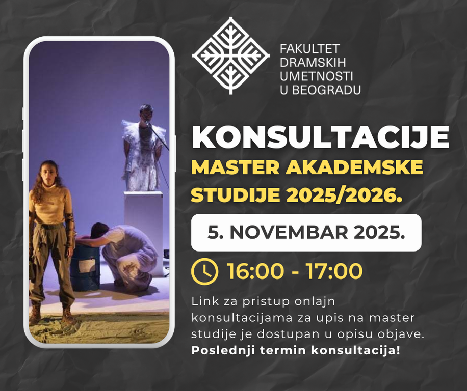 ДОДАТНИ ТЕРМИН КОНСУЛТАЦИЈА ЗА ПРИЈЕМНИ ИСПИТ ЗА МАСТЕР СТУДИЈЕ - ПОЗОРИШНА РЕЖИЈА